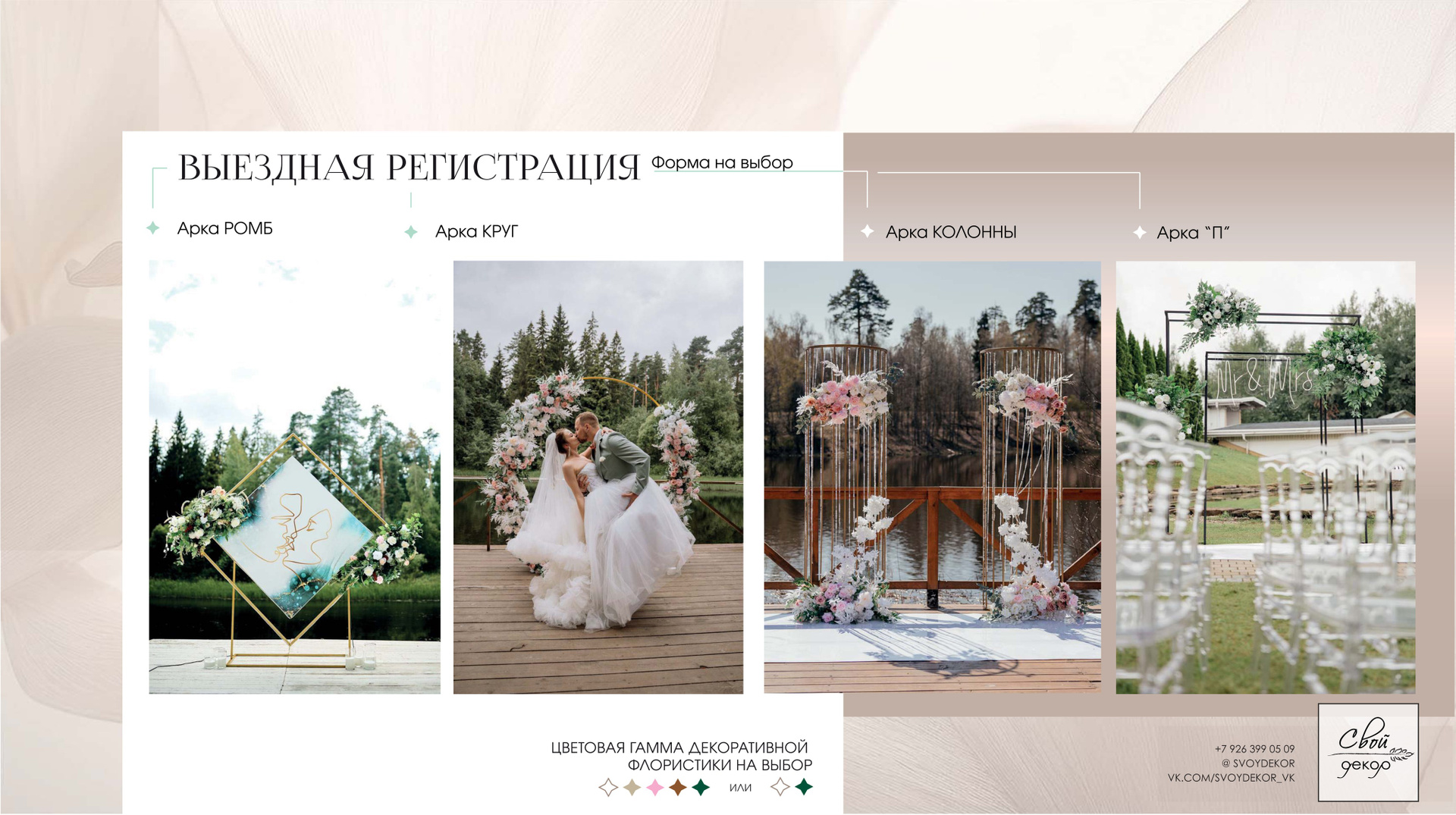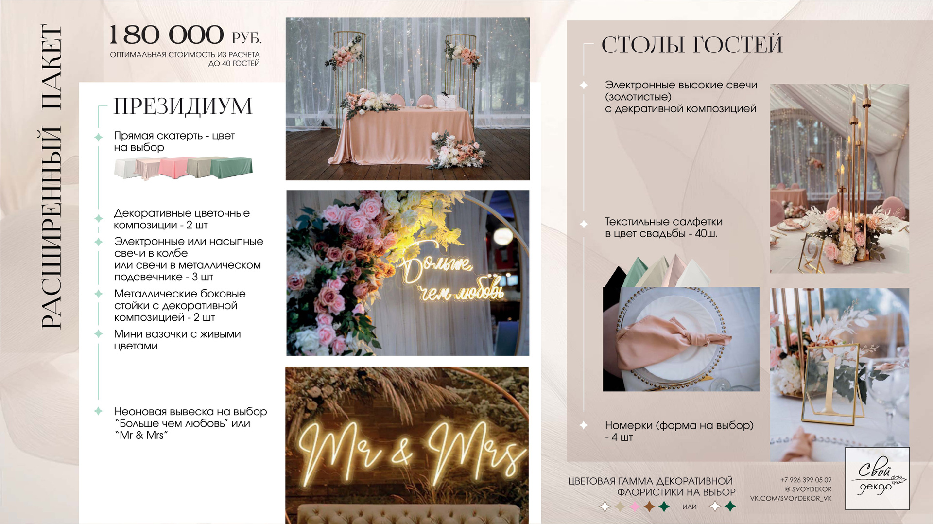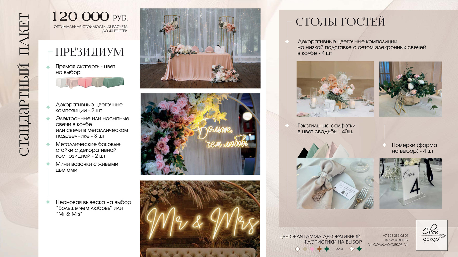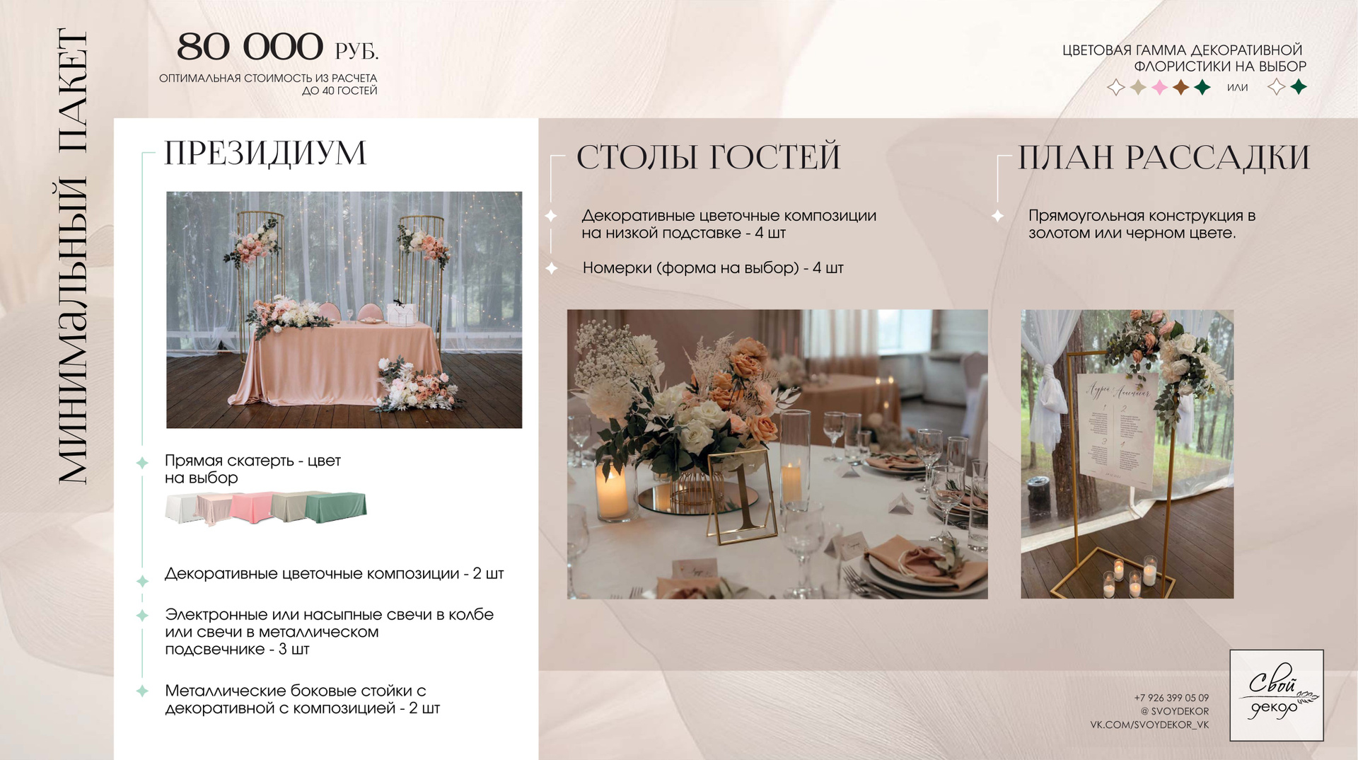 Готовые свадебные пакетные предложения содержат оптимальную стоимость из рассчета до 40 гостей.